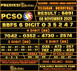Selamat datang di situs resmi Prediksi KIKOTOGEL. Prediksi KIKOTOGEL adalah situs prediksi angka togel andalan yang berasal dari situs togel terpercaya dan ternama, yaitu KIKOTOTO. Sejak tahun 2018, KIKOTOGEL konsisten menghadirkan prediksi akurat yang membuat para pemain, analis angka, master paito, hingga komunitas togel resmi percaya penuh pada layanannya. Hari ini, KIKOTOGEL kembali menghadirkan Prediksi PCSO sabtu 08 NOVEMBER 2025 secara eksklusif untuk Anda yang ingin mendapatkan angka jitu dan peluang menang yang lebih tinggi. Prediksi ini disusun berdasarkan data real-time dan analisa mendalam oleh tim profesional KIKOTOTO.