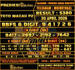 PREDIKSI TOGEL TOTO MACAU P2 20 APRIL 2026